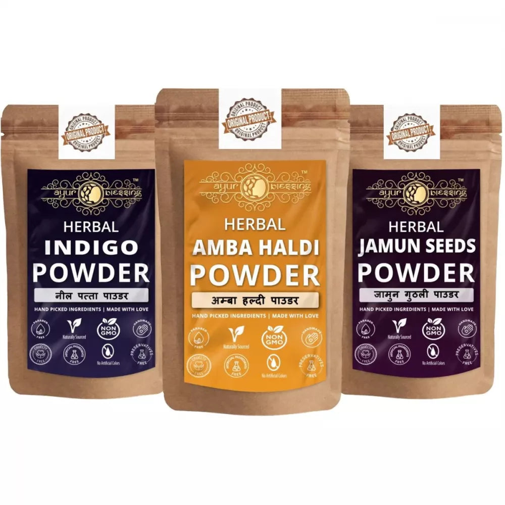 Ayur Blessing Herbal Amba Haldi & Indigo & Jamun Seeds Powder Combo