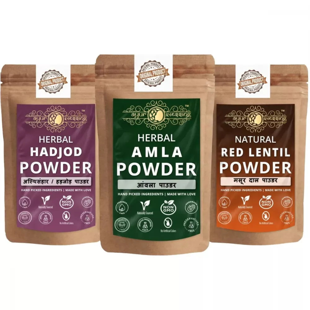 Ayur Blessing Herbal Amla & Hadjod & Red Lentil Powder Combo