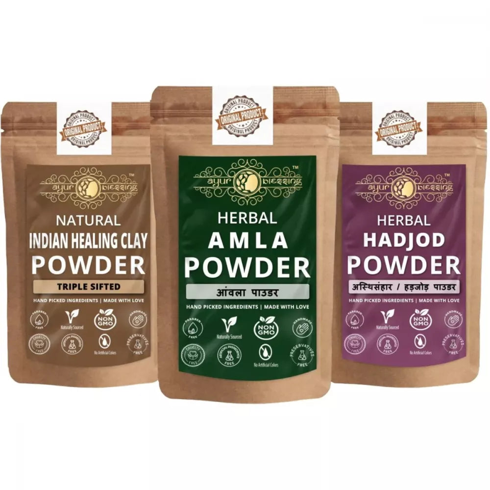 Ayur Blessing Herbal Amla & Indian Healing Clay & Hadjod Powder Combo