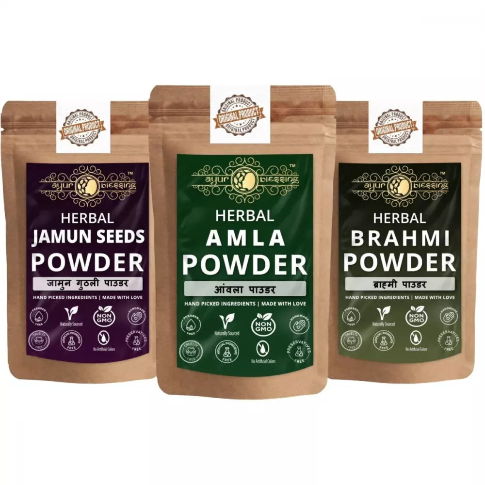 Ayur Blessing Herbal Amla & Jamun Seeds & Brahmi Powder Combo