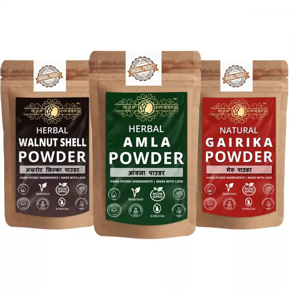 Ayur Blessing Herbal Amla & Walnut Shell & Gairika Powder Combo