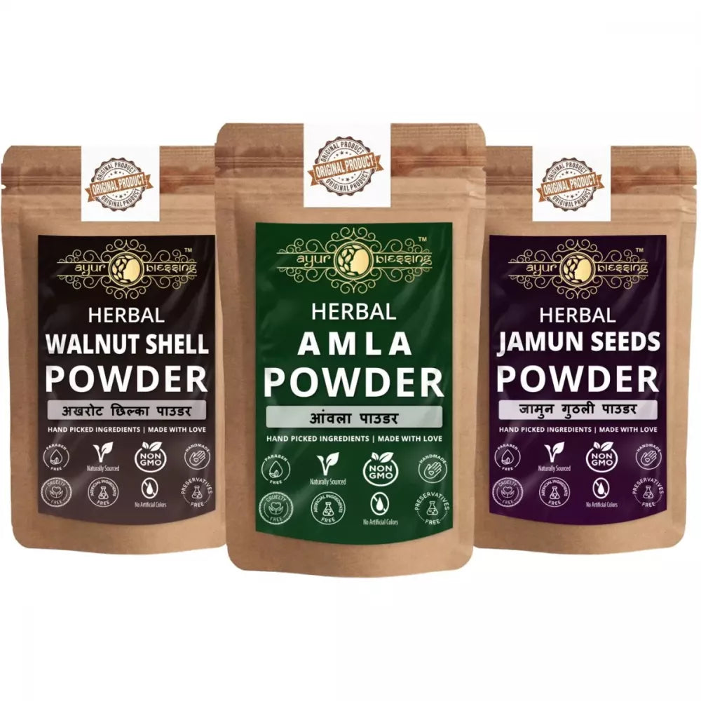 Ayur Blessing Herbal Amla & Walnut Shell & Jamun Seeds Powder Combo