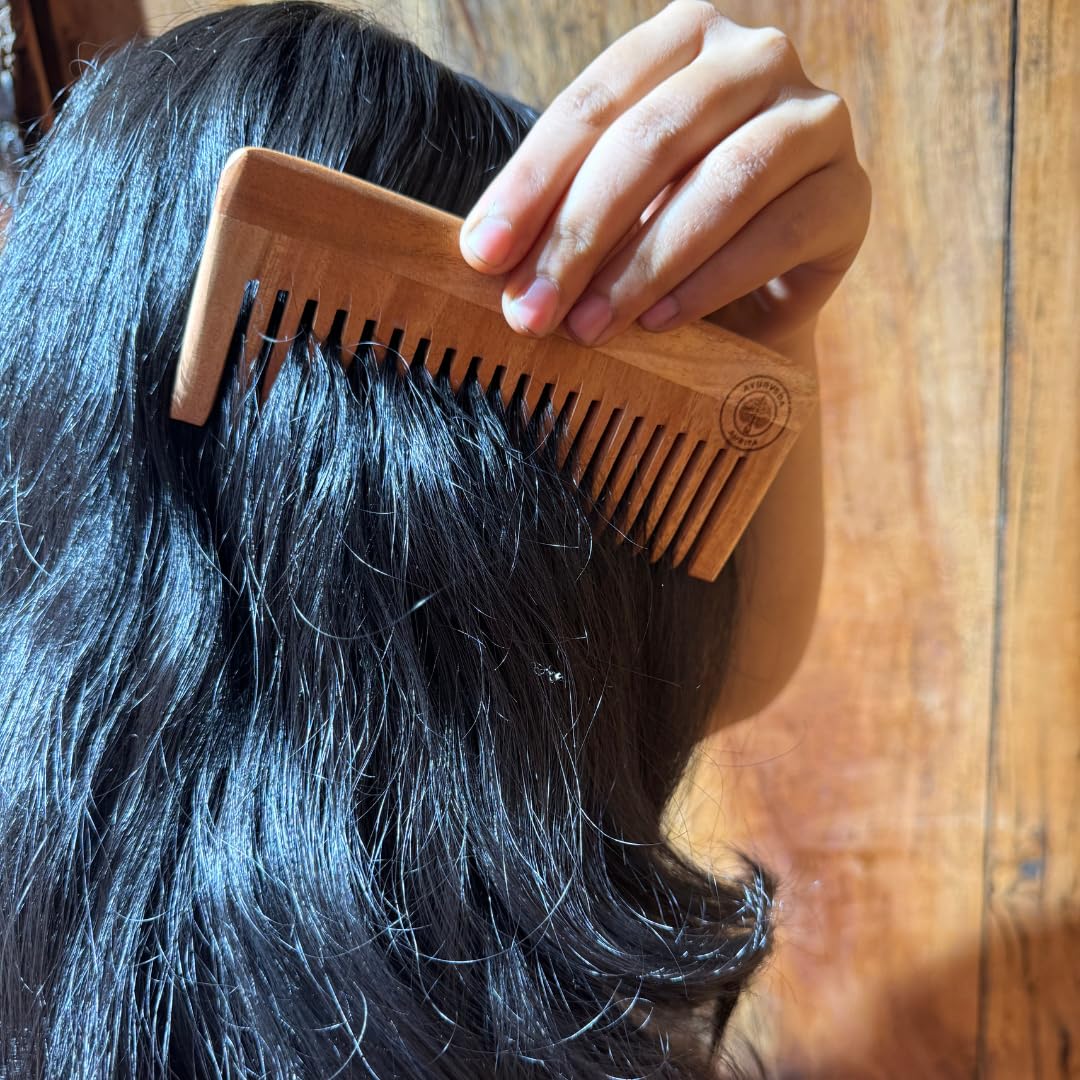 Ayurveda Amrita Organic Medium Neem Wood Comb | Helps in Dandruff Removal