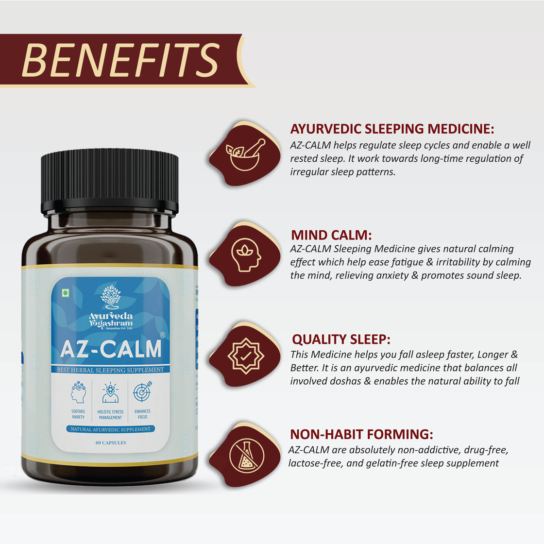 • AZ-CALM Sleeping Medicine relaxes the mind and promotes sleep.