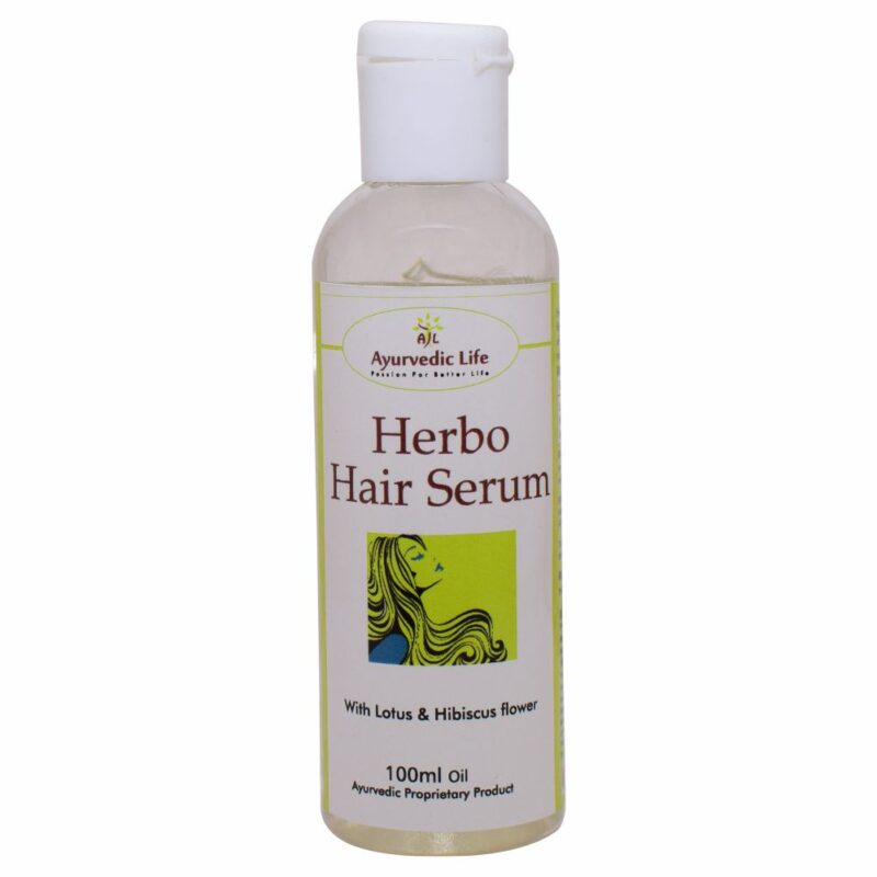 - Ayurvedic hair serum is infused with hibiscus and lotus flower. It helps to strengthen your hair and works on the dry and itchy scalp