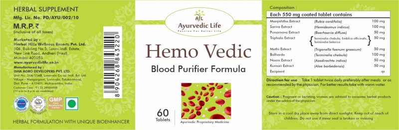 - Hemo Vedic tablets may be used internally to purify the body, externally to beautify the body, and therapeutically to soothe and heal the body inside and out.