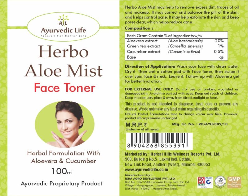 Ayurvedic Life Ayurvedic skin toner – Aloe mist – 100 ml Pack of 2