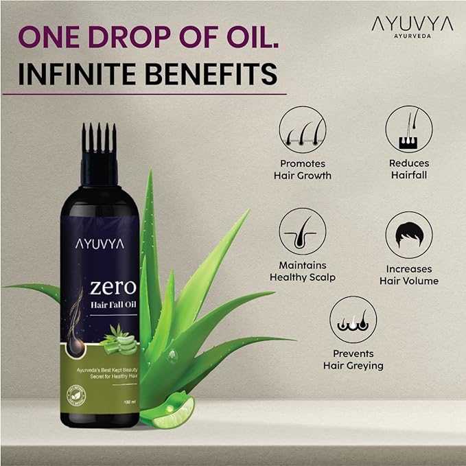 • Enriched with the excellence of ayurveda, ayuvya's zero hairfall oil is made with non-sticky, non-greasy formula that not only controls hair fall but also improves your hair health.