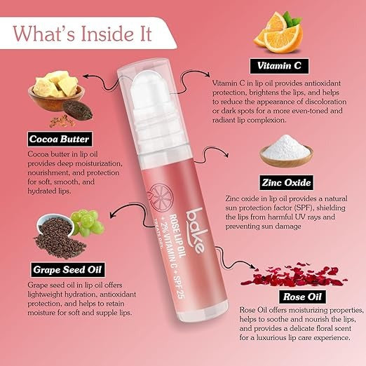 Bake 2% Vitamin C Rose Tinted Lip Oil Balm with SPF 25 - 15 ml