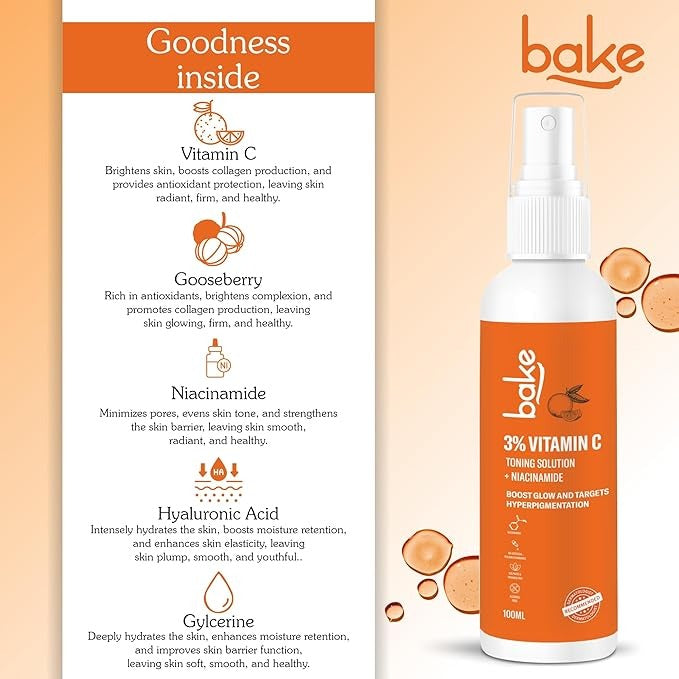 Bake 3% Vitamin C Toner with Niacinamide For Pigmentation - 100 ml
