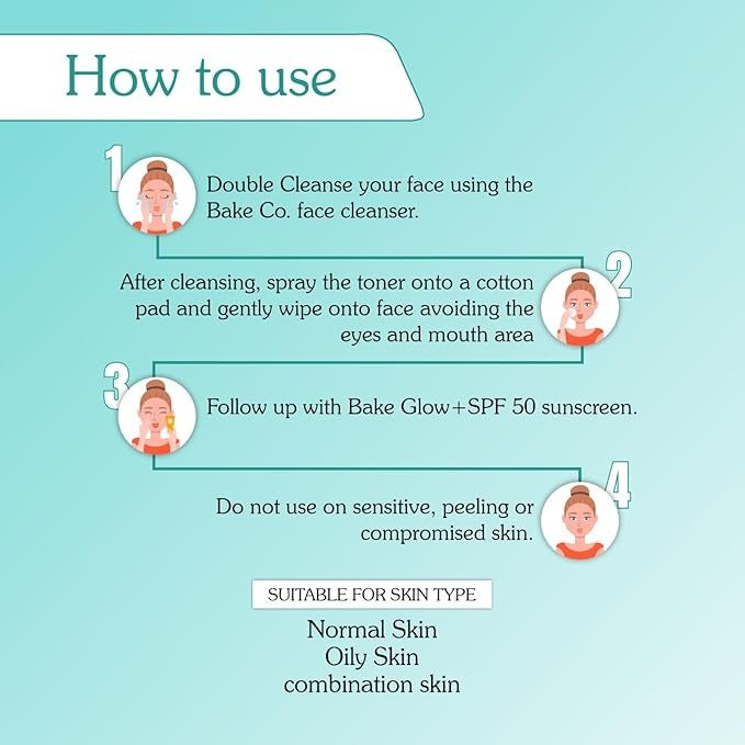 Bake 5% Glycolic Acid Alcohol Free Toner with Hyaluronic Acid - 100 ml (Pack of 2)