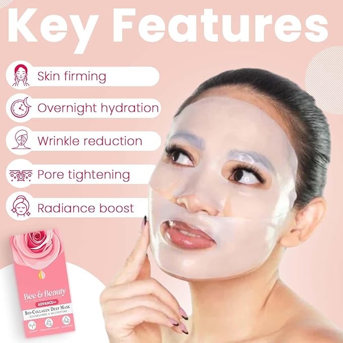 Bee & Beauty Bio Collagen Overnight Mask Pink Sheet Mask For Deep Hydration