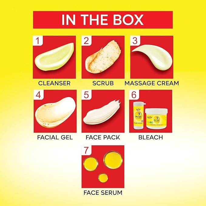 - In the Box: Facial cleanser, Facial Scrub, Cream, Face Pack, and Facial Gel included