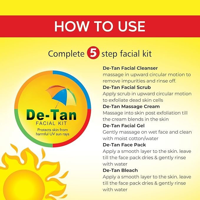 Bee One Complete 5 step Detan Facial Kit for Radiance & Youthful Glow - 312 gms