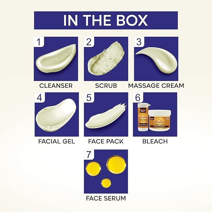 • In the Box: Facial cleanser, Facial Scrub, Cream, Face Pack, and Facial Gel included