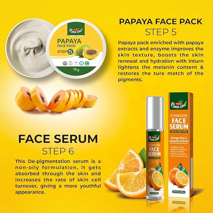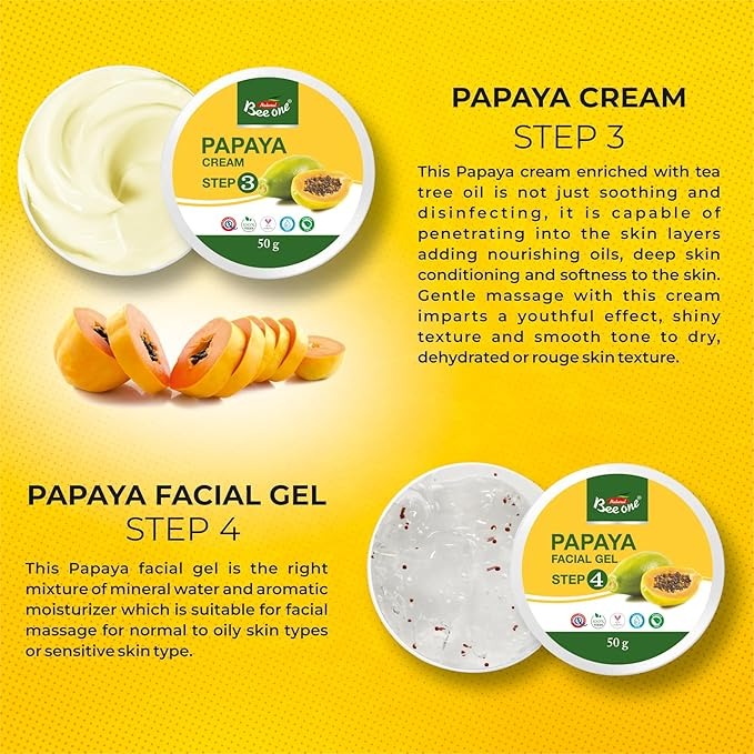 Bee One Complete 5 step Papaya Facial Kit for Radiance & Youthful Glow - 312 gms