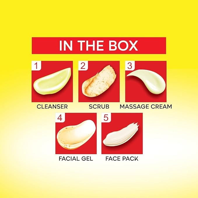 • In the box - Face Cleanser,Exfoliating Scrub,Skin Cream,Facial Gel, Face Pack