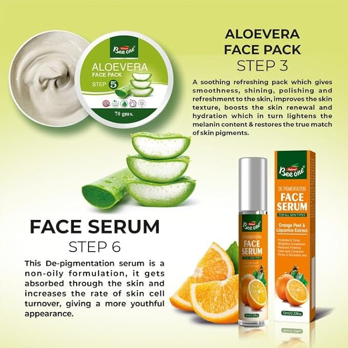 BeeOne Complete 5 step Aloevera Facial Kit for Radiance & Youthful Glow - 312 gms