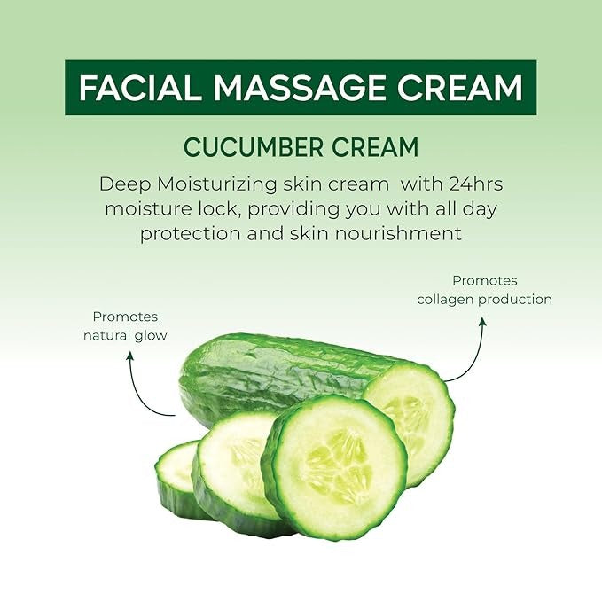• Cucumber-Infused Hydrating Cream – Refreshing cucumber extract hydrates and soothes skin, providing a cooling sensation for tired, dry, or irritated skin.