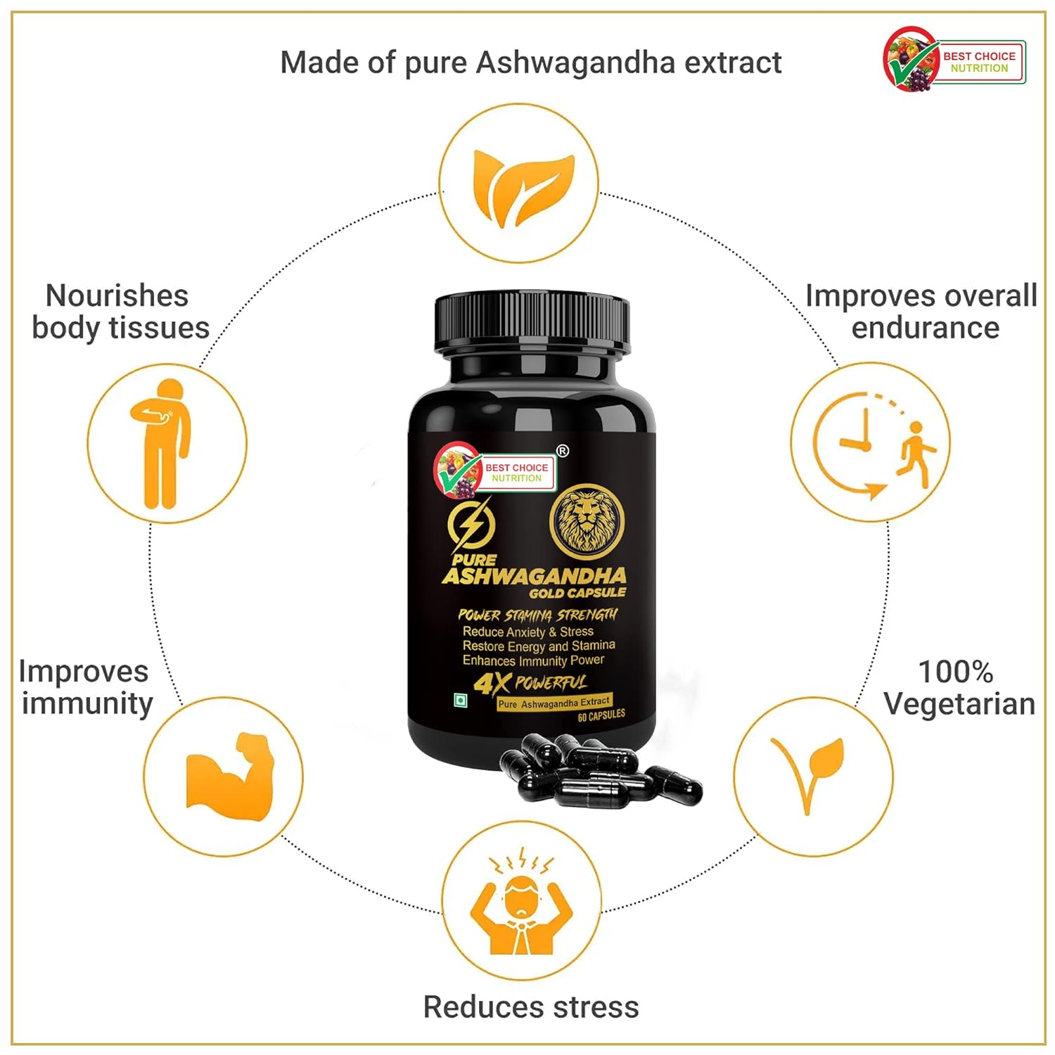 Best Choice Nutrition Ashwagandha Gold - 60 Capsules