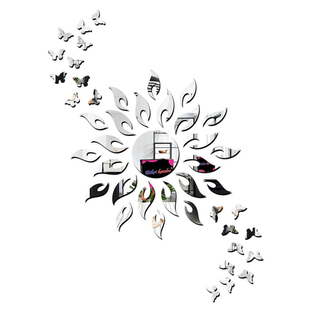 • its not real mirror its just for decorative purpose.this product will be an excellent pick for you,this product enhances any home with on-trend style and beautiful eye-catching modern design aesthetics.make your home beautiful search Bikri kendra a trusted brand of amazon.decorate your dream walls makes a great gift too ideal to decorate home office living room bedrooms kids room drawing room nursery hall room wall office wall ceilings childeren room bathroom