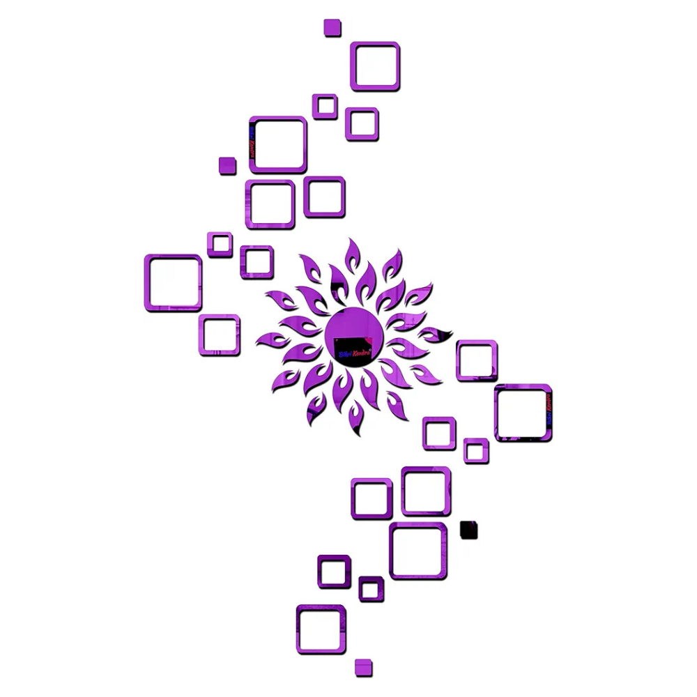Bikri Kendra Glass Art Bk116, Sun Purple With Square Purple 4 Set 3D Acrylic Mirror Stickers For Wall