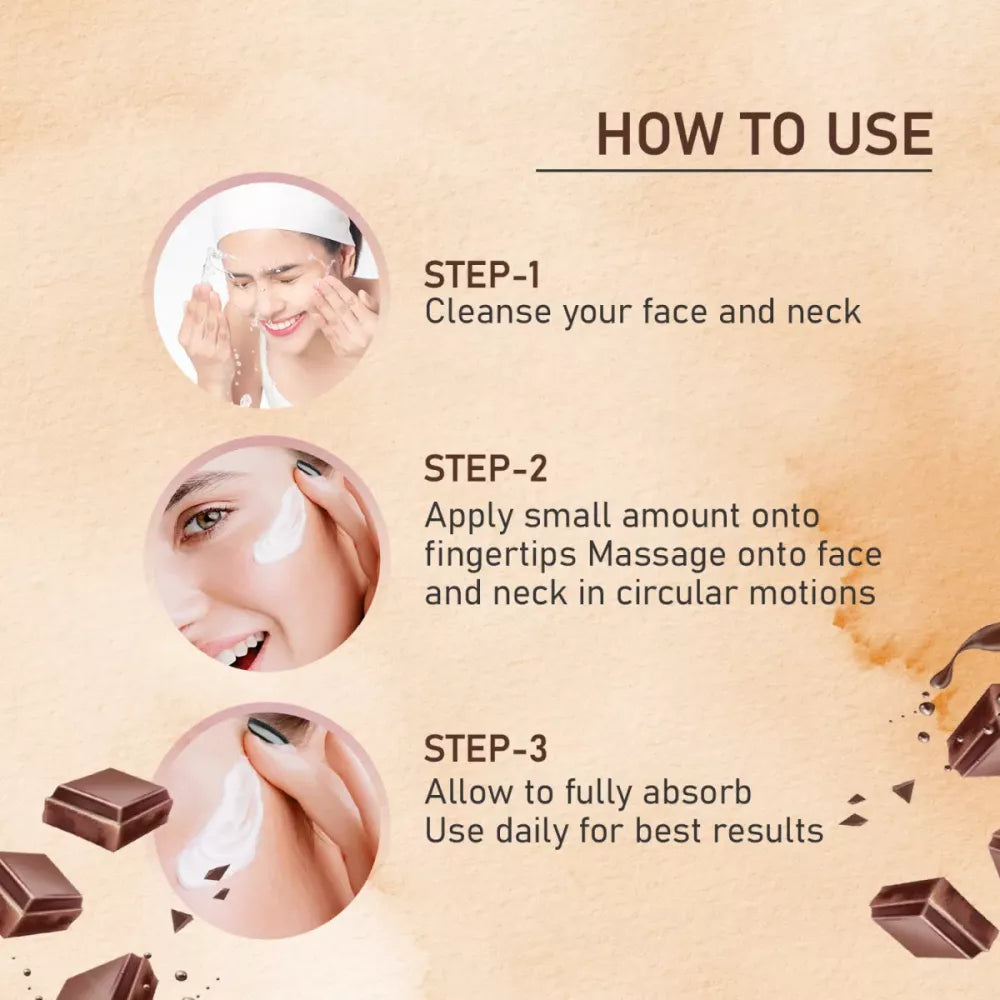 • Chocolate Facial Cream is high in antioxidants and contains anti-ageing properties. It also imparts a healthy glow to your face.