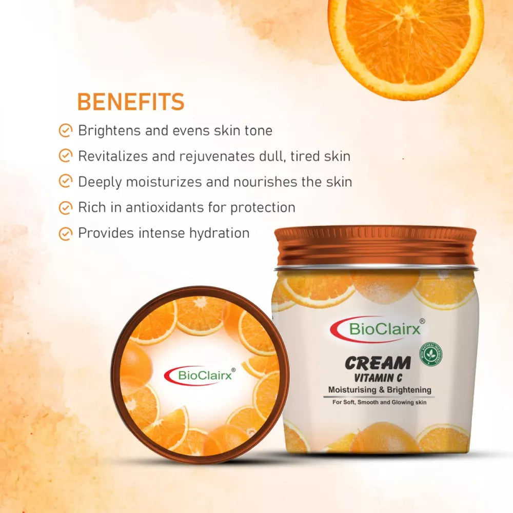 • BioClairx Vitamin C cream is a luxurious skincare product that contains natural ingredients such as vitamin C and citric acid.
