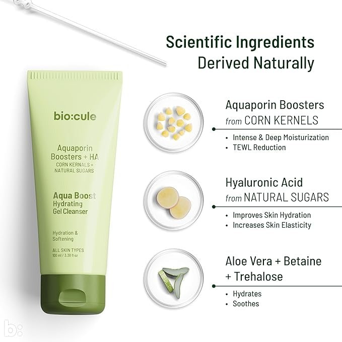 • FROM NATURE, WITH SCIENCE : biocule Aqua Boost Hydrating Gel Cleanser is a humectant rich face wash formulated to gently remove dirt, makeup and debris from skin without stripping the skin of its natural moisture. It instantly hydrates & strengthens skin's moisture barrier for a healthy and plump looking skin upon continuous use.