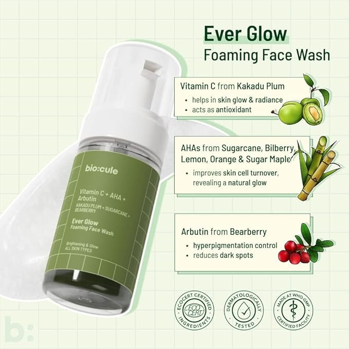 Biocule Ever Glow Foaming Face Wash for Glowing & Even Skin Tone - 100 ml