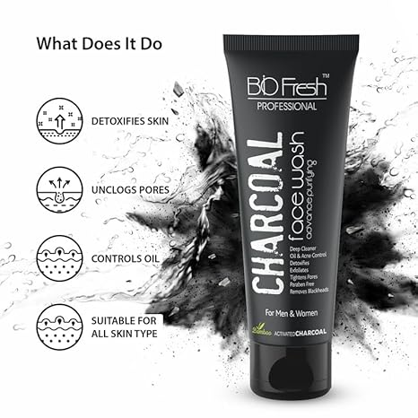 - Product Details: Product Contains a Pack of 3 Charcoal Face Wash | Net Vol: 75ML | Form Type: Cream | Treats: Oil & Acne Control | Ingredients: Charcoal, Coffee & Clay | Skin Type: For All Skin Types | Biofresh Charcoal Face Wash Deep Cleanses Pores removing dirt and impurities.