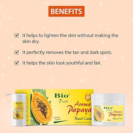 - Product Details: Package Contains 1 Pack of Bleach Cream | Skin Type: Suitable for All Skin Types | Scent: Papaya | Product Includes: Cream & Powder | 100% Vegan | No Toxic Chemicals | With our Biofresh Bleach Cream get Brighter & Even Out Skin Tone giving the skin a healthy glow.