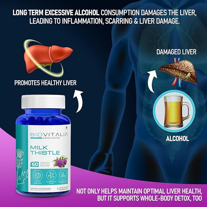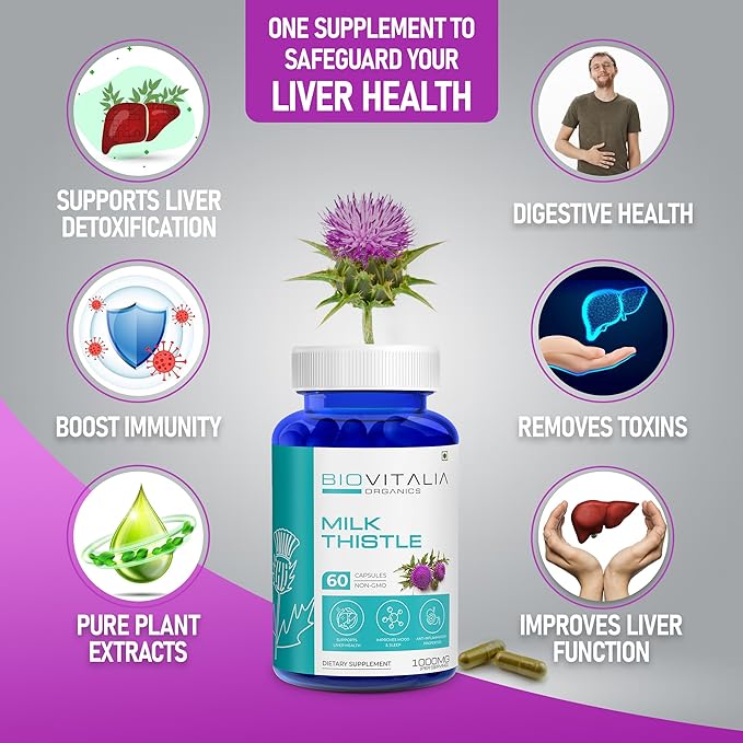 • Healthy Liver Function - Biovitalia Liver detox Supplement promotes liver detoxification by carrying away waste products from all the blood flowing through stomach and intestine, and converts healthy nutrients to excrete stomach friendly juices which promote better Stomach Function.