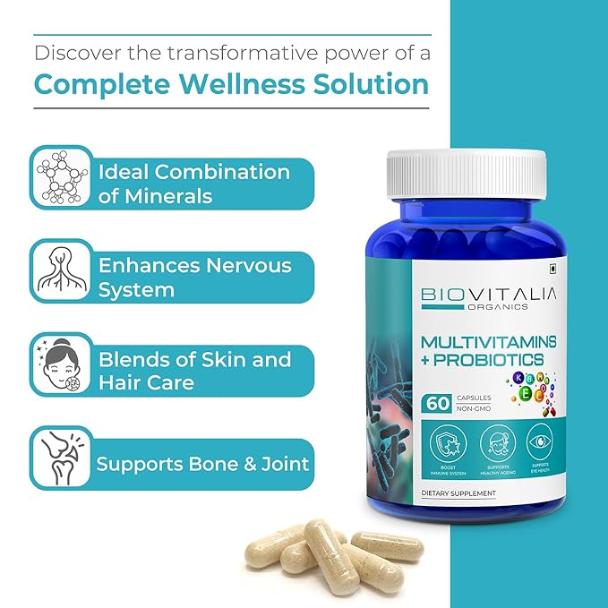 • Complete Nutrition: Our Multivitamin + Probiotics capsules is a dynamic fusion designed to provide comprehensive daily nourishment.