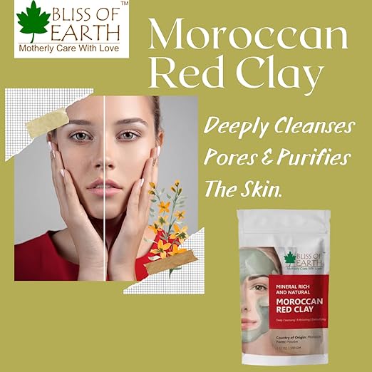 • Bliss of Earth Original Moroccan Red Clay Powder - 100 gms Each (Pack of 2)