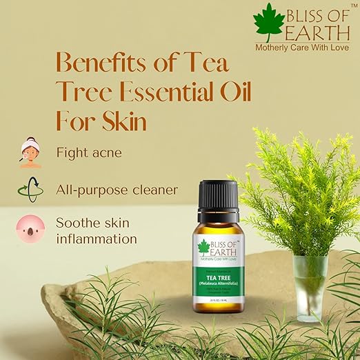 • VERSATILE SOLUTION: Tea Tree oil is one of the most popular essential oils. It is known for its medicinal and antimicrobial properties. Because of its impressive level of quality, bliss of earth Tea Tree oil lets you experience the full benefits of the fresh, woody & herbaceous aroma.