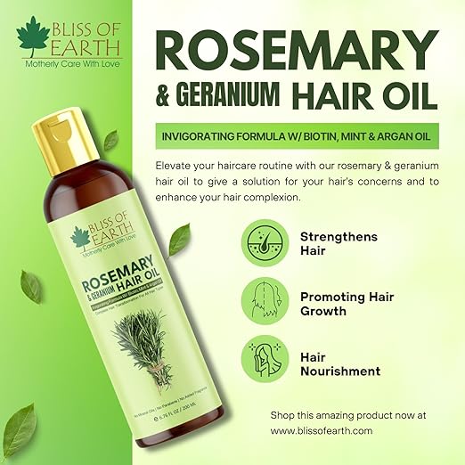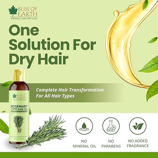• Natural Hair Growth Booster: Enriched with essential nutrients, Bliss of Earth Rosemary Hair Oil promotes healthy hair growth, making your hair thicker and more vibrant.