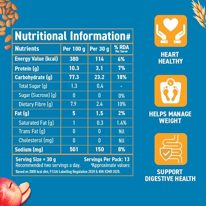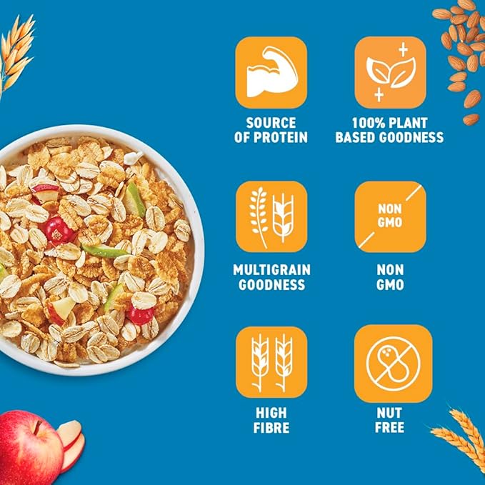 • Made with natural whole grains and enriched with bran, this diet friendly muesli comes packed with a lot more oats and fibre.