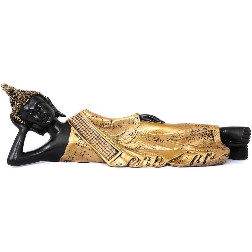 • Package Content: One eCraftIndia Golden And Black Polyresin Reclining Lord Buddha Idol