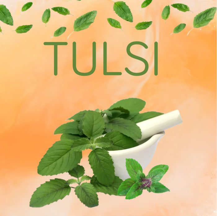 • Tulsi: A natural coolant, Tulsi is an anti-fungal herb & the best hair tonic that helps nourish hair to prevent hair fall. It also helps fight dandruff, improve circulation to the scalp & with flaking of scalp by its effective pore cleansing properties.