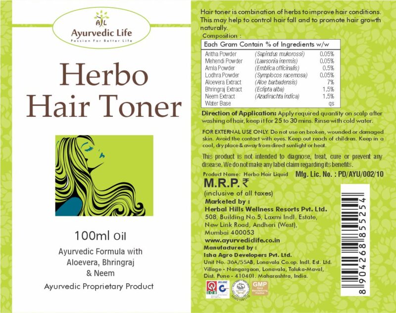 • This hair toner is a combination of authentic hair care herbs such as Aritha, Mehendi, Amla, Lodhra, Aloe vera, Bhringraj, Neem.