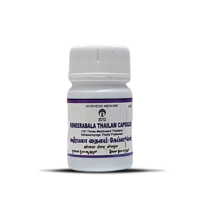 Impcops Ksheerabala (101) Capsules are crafted using traditional formulations inspired by Ayurvedic heritage. these capsules contain carefully selected vegetarian ingredients. Reflecting over 75 years of experience, Imcops continues its dedication to quality and authenticity in natural products.
