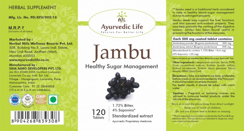 Ayurvedic Life Jamun tablet – Jamun for Sugar balance – 120 tablet Pack of 2