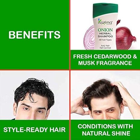 - Onion Herbal Hair Oil on the head at the night while sleeping then washes it in the morning from the KAZIMA Onion Herbal Shampoo. After shampooing, follow with a KAZIMA Conditioner to keep your locks looking thick, full, shiny, smooth, and healthier than ever.