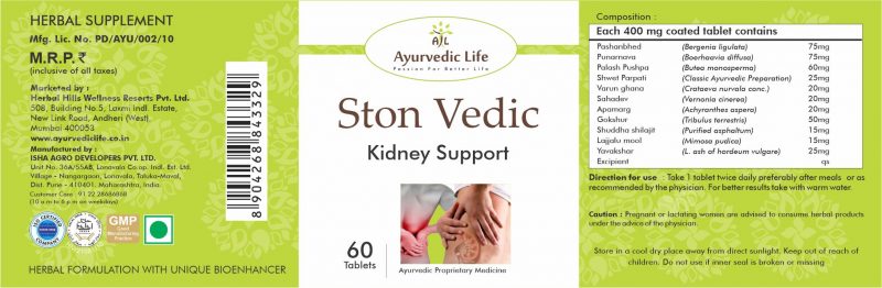 • Ston Vedic tablets a Kidney Care formula supports renal calculi and the health of the gallbladder and kidneys.