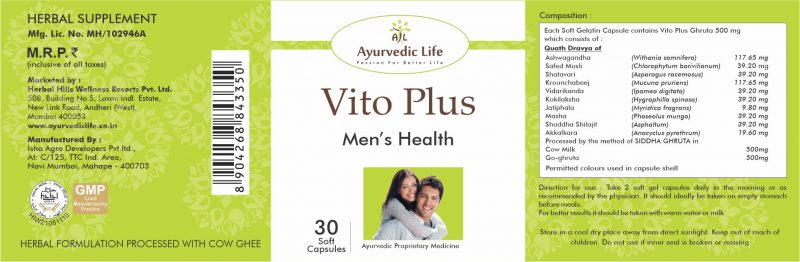 • Vito Plus soft gel capsules are specially designed by Ayurvedic Life for mens health.