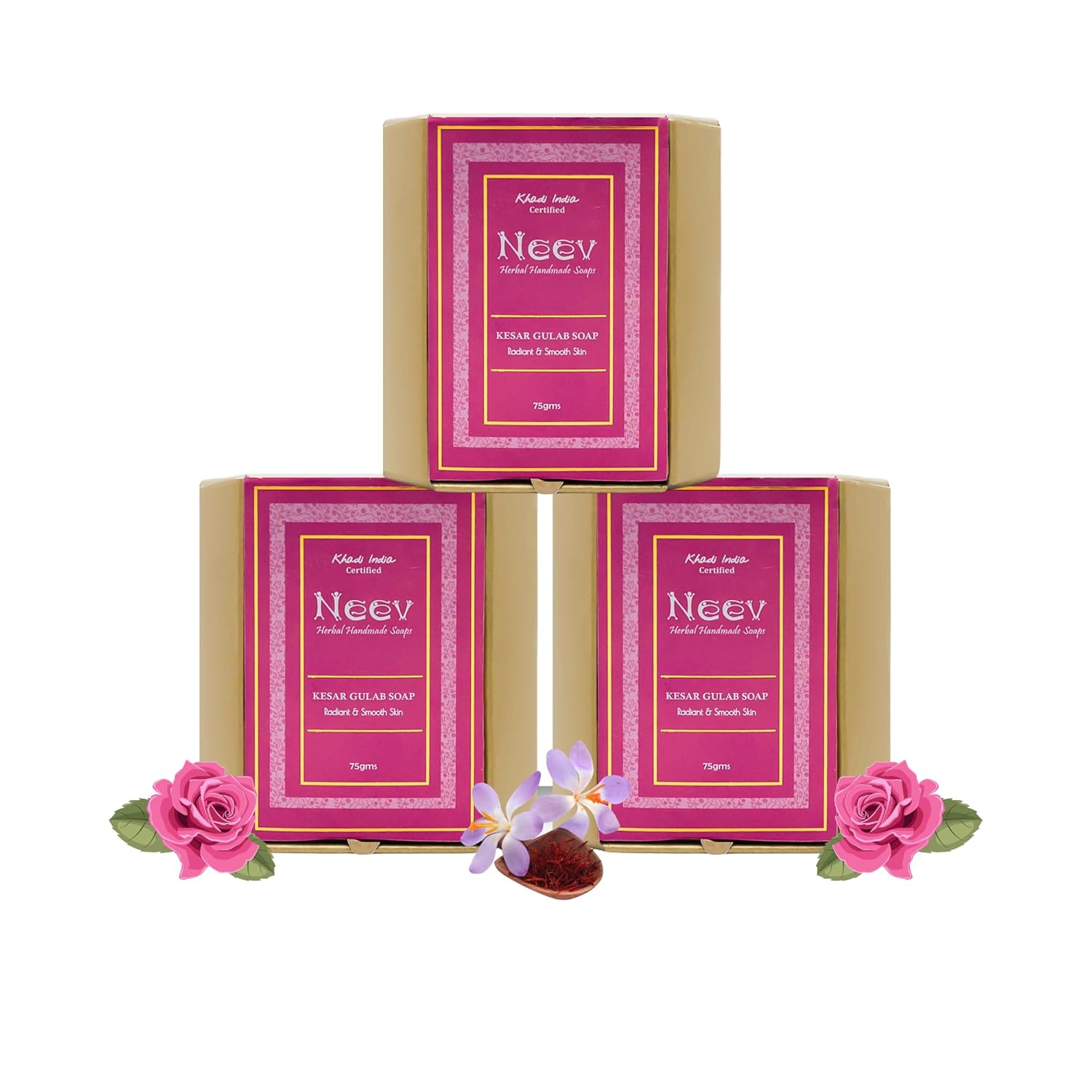 Neev Kesar Gulab Soap For a Radiant and Smooth Skin - 75 gms (Pack of 3)