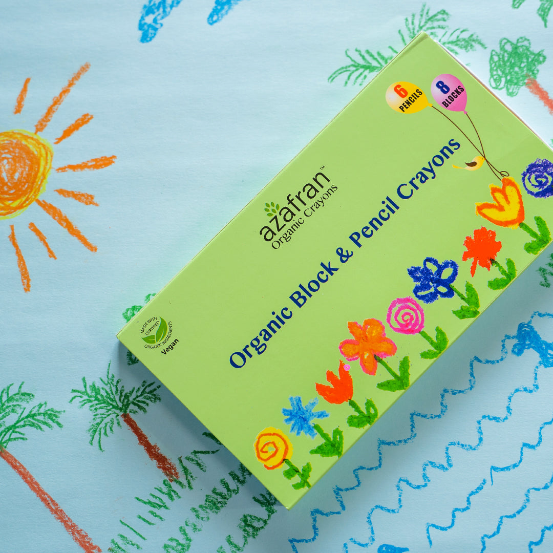 Azafran Organic Block & Pencil Crayons (8 Blocks & 6 Pencils) - 111 gms