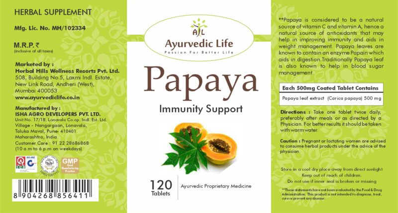 Ayurvedic Life Papaya tablet – Immunity Support – 120 tablet