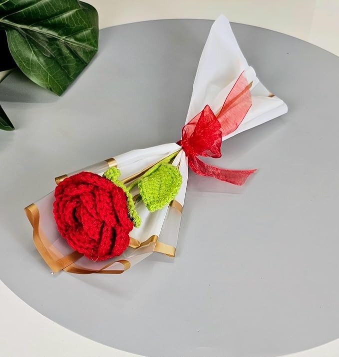 • PACKAGE INCLUDES : 1 Pcs Artificial Crochet Flower Red Rose bouquet / MATERIAL : Crochet / COLOR : RED / WASHABLE : NO / Size:- 30 Cm